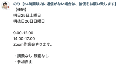 確かに勉強会や懇親会ってどうしても夜帯になっちゃうので、日中の時間帯でも皆さんが集まれるような機会っていうのは講師陣の中で話し合ってみようと思います。