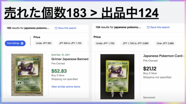 うまく競合が見つけられないカード、セットの組み合わせをされていて、他のアカウントより飛び抜けてお上手な出品の仕方だと思います。