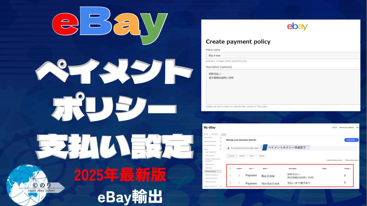 今回は eBay ビジネスポリシーの ペイメントポリシー (支払いのポリシー)の作成方法を解説していきます。